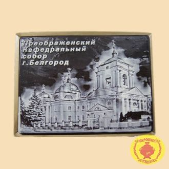 Пряник в темной шоколадной глазури, оформленный темным и белым шоколадом с начинкой из вареной сгущенка и грецкого ореха