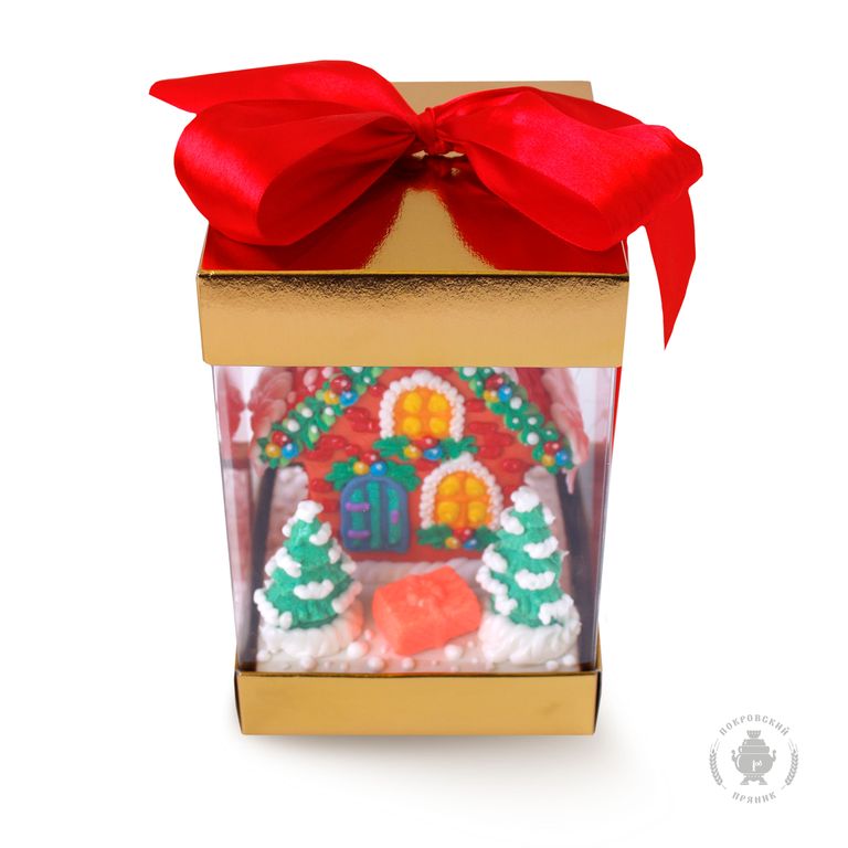 Пряничный домик с начинкой из вареной сгущенки и грецкого ореха в целлофановой упаковке с бантом