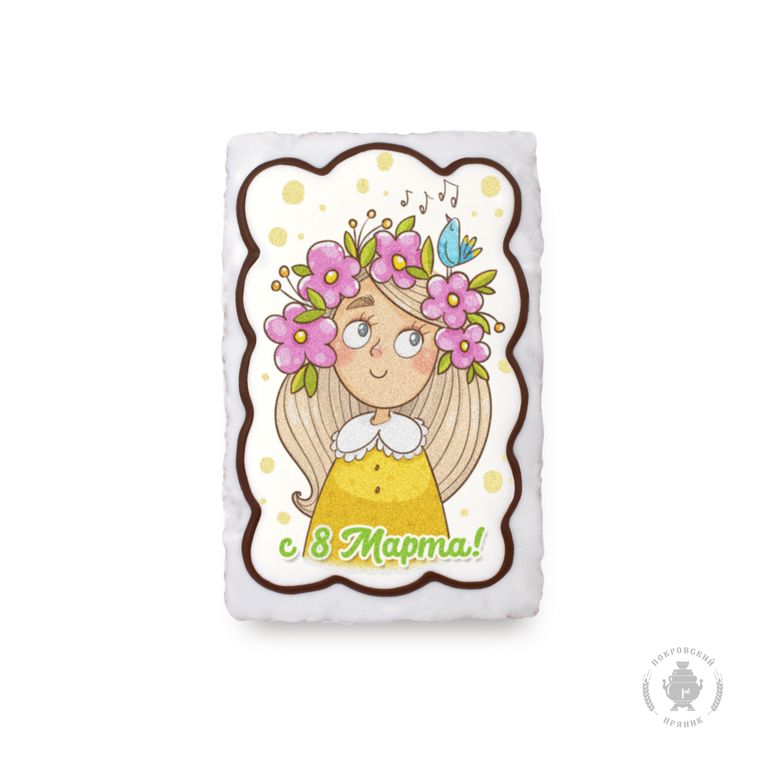 Пряник, украшенный сахарной глазурью с начинкой из вареной сгущенки и грецкого ореха