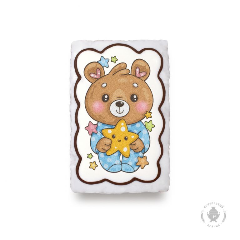 Пряник, украшенный сахарной глазурью с начинкой из вареной сгущенки и грецкого ореха