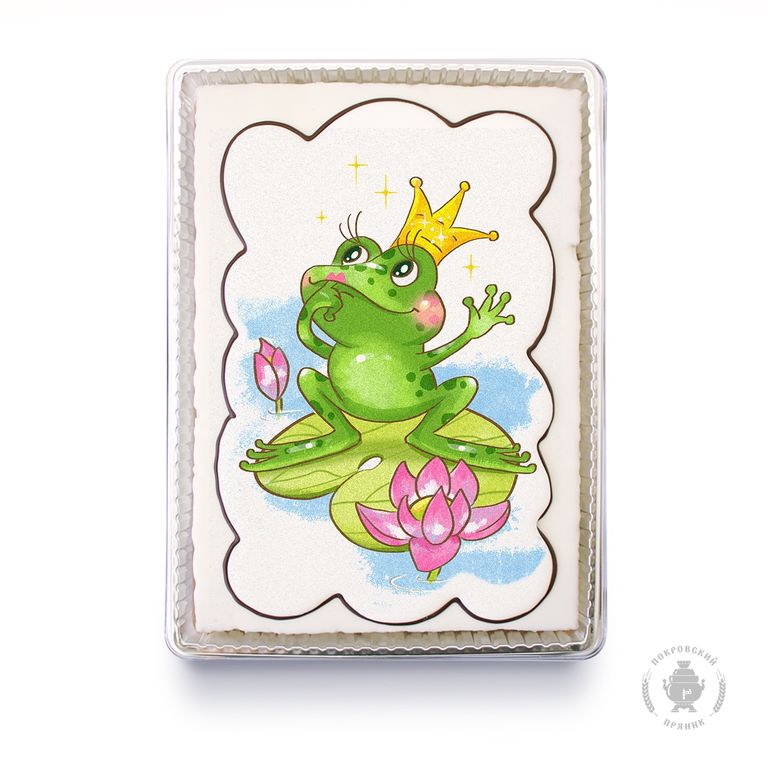 Пряничный тортик, украшенный сахарной глазурью с начинкой из вареной сгущенки и грецкого ореха