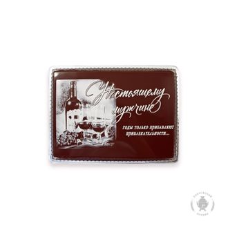 Пряник в темной шоколадной глазури, оформленный темным и белым шоколадом с начинкой из вареной сгущенка и грецкого ореха