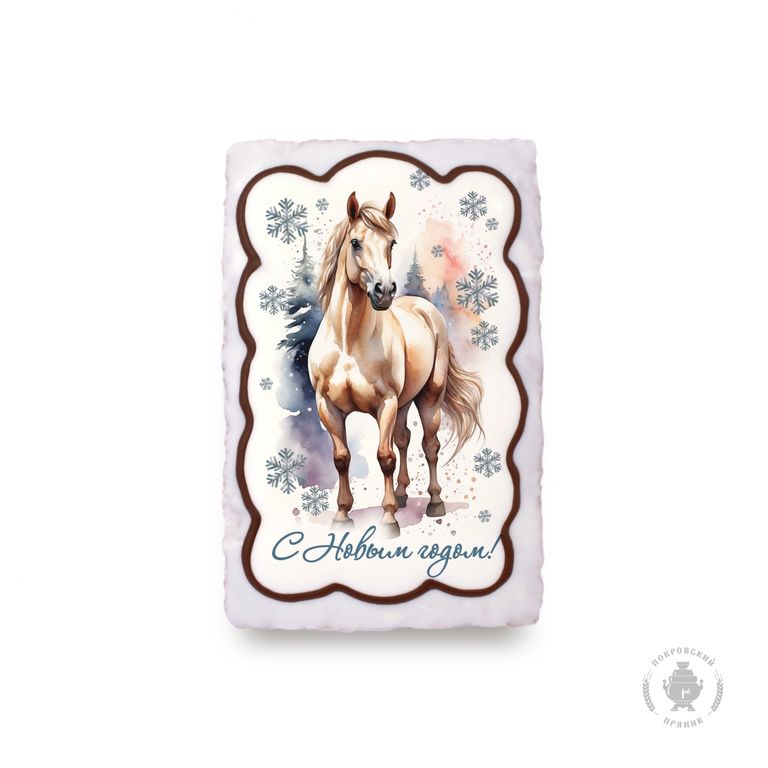 Лошадь с белыми снежинками "С Новым годом" (130 грамм)