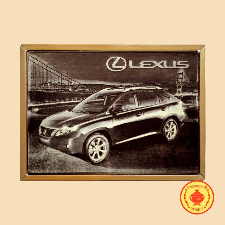 Пряник в темной шоколадной глазури, оформленный темным и белым шоколадом с начинкой из вареной сгущенка и грецкого ореха, стоимость дизайна определяется индивидуально.